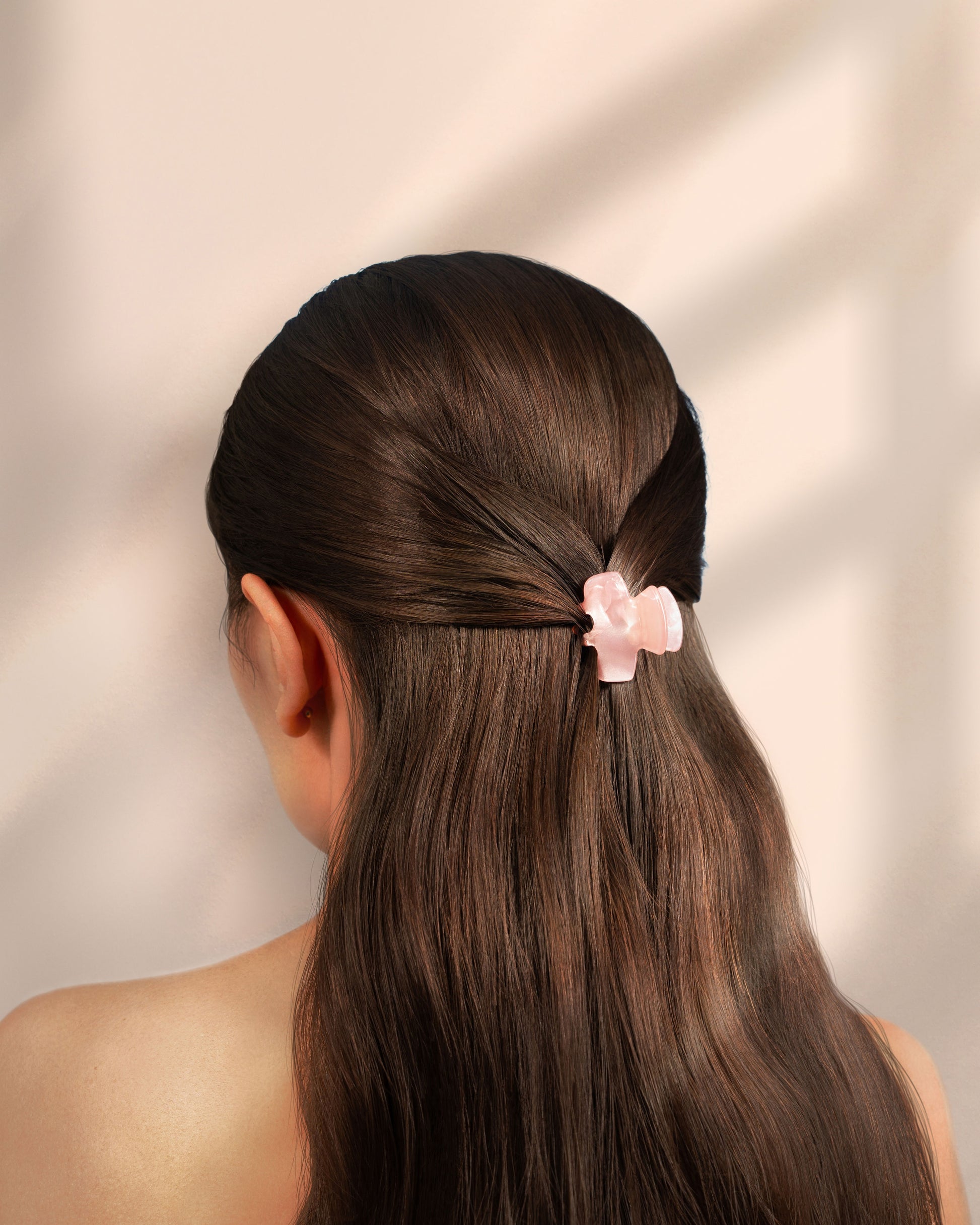 Made with a glossy, pearly finish in a dreamy blush shade, these clips are as pretty as they are practical. Small but mighty, they’ve got a strong grip without tugging or pulling, making them a must-have for every hair stash.