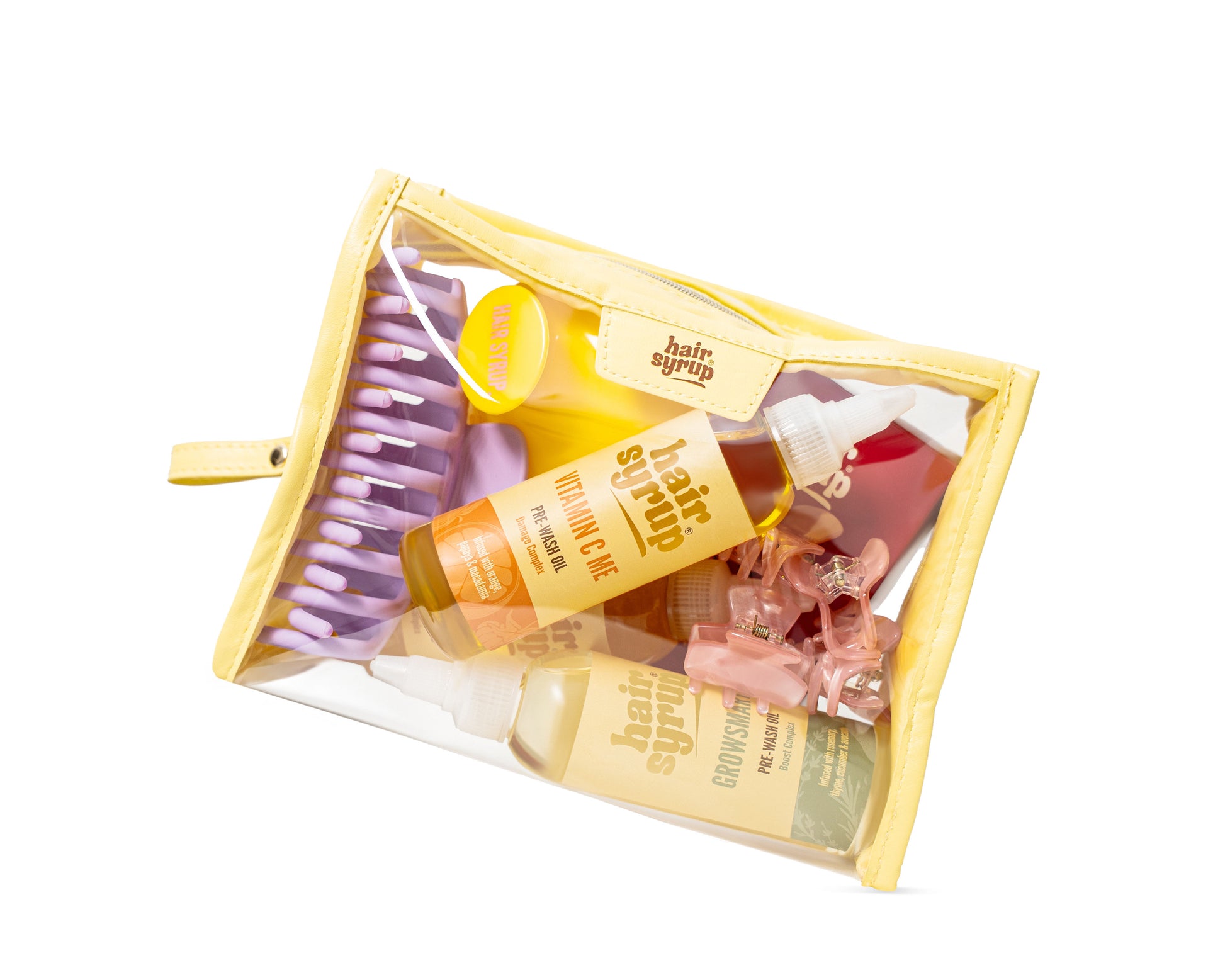 Our Hair Syrup Handy Bag is here to keep your haircare organised and travel-ready. Made from durable, wipe-clean materials and finished with our signature branding, this clear zip-up pouch is perfect for storing your syrup stash (plus anything else you can’t live without).